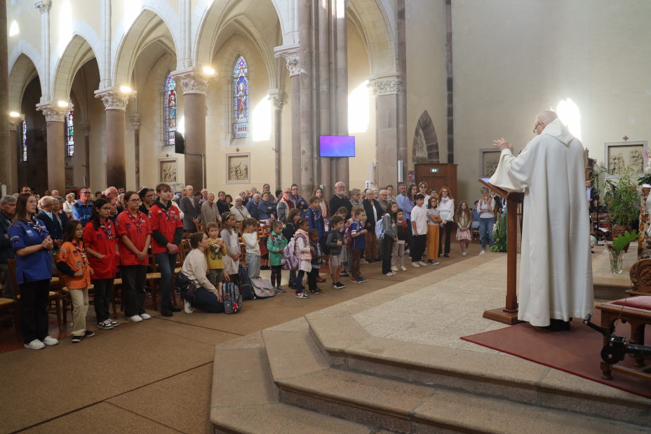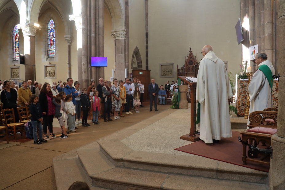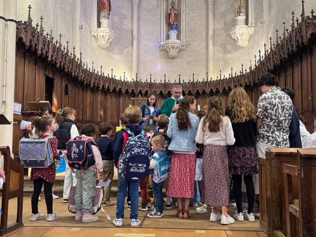 Les abbés Pascal et Pierre ont béni les cartables et les enfants (ainsi que les enseignants), puis les catéchistes à la fin de la messe. Une belle messe bien animée par les musiciens !