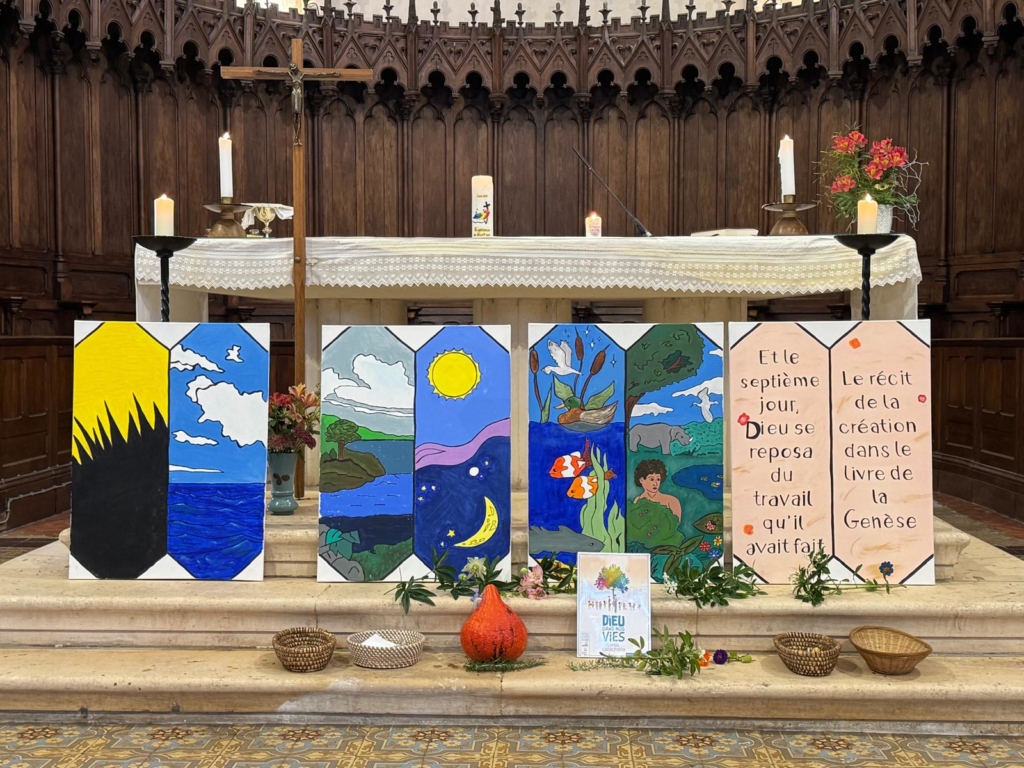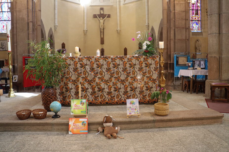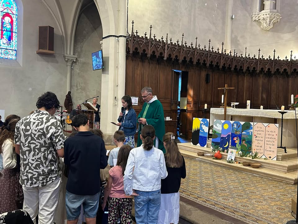 Dimanche 21 septembre 2025 à St Macaire et St Germain, les enfants de nos paroisses St Benoît et St Maurice en Val de Moine, ont apporté des éléments de la nature pour la messe de la Création.
