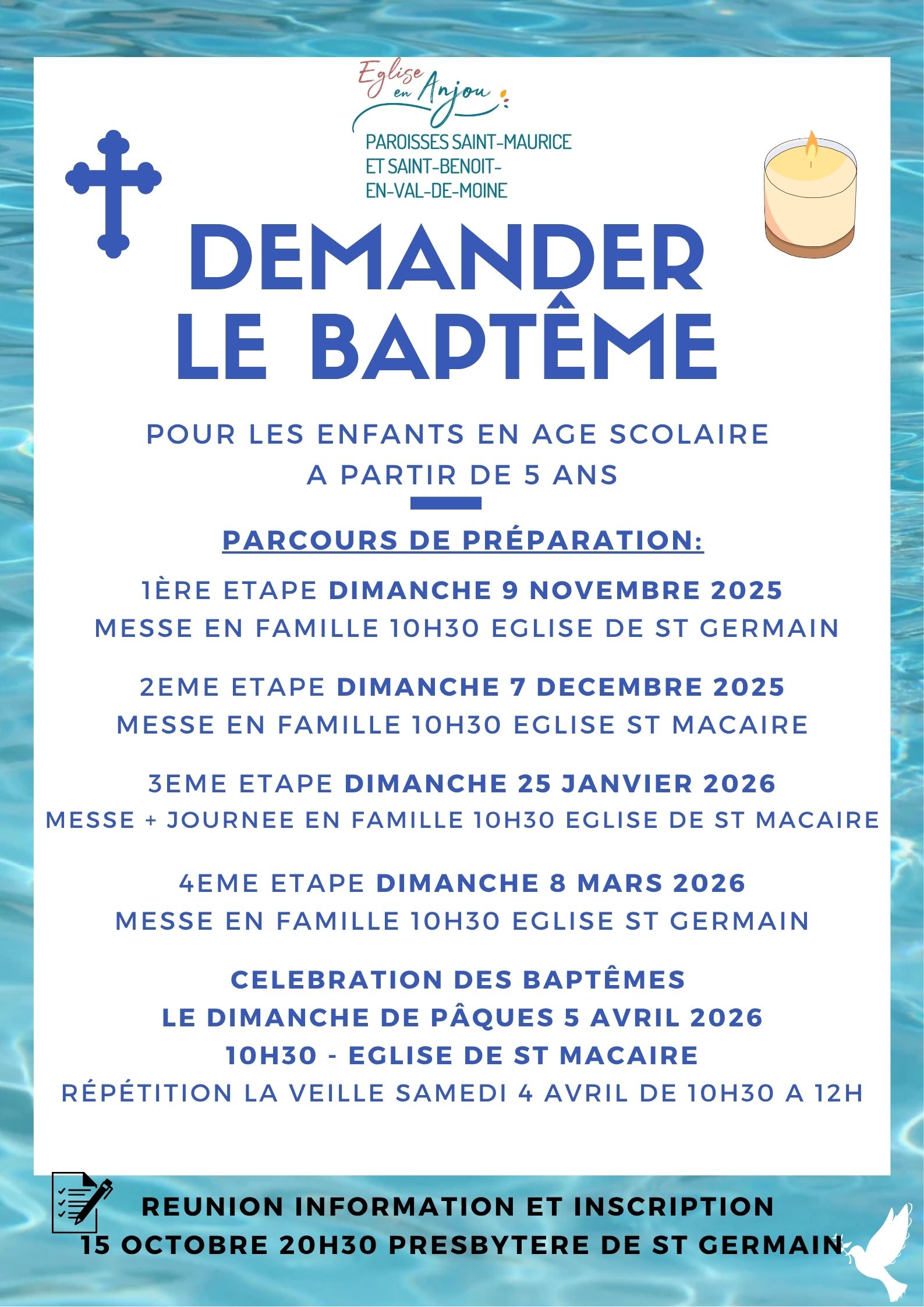 - rencontre 3 : dimanche 25 janvier 2026 à 10h30, église de St Macaire (messe + journée en famille)