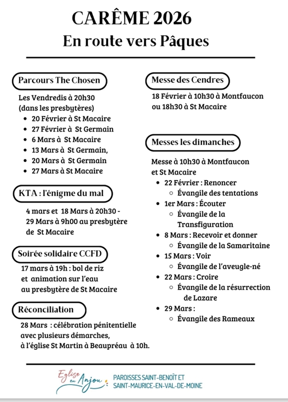 Découvrir Jésus autrement, c’est possible, c’est une fois par semaine pendant le carême, et c’est près de chez vous, en alternance à St Macaire ou à St Germain.